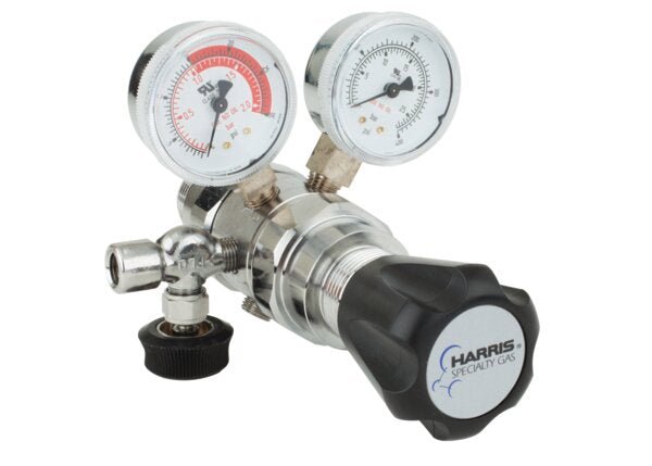Model 717 is a uniquely designed regulator for acetylene applications. This regulator prevents overdrawing the acetylene cylinder where acetone or other solvents can be pulled into the gas stream and damage downstream equipment. The regulator shuts off the flow of gas when acetylene cylinder pressures become too low to support the process. Outlet needle valve for flow control comes with all units.
