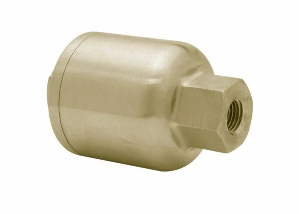 This inline flashback arrestor prevents flashback in oxy-fuel gas systems. An internal check valve prevents backflow while a sintered metal filter absorbs the heat and extinguishes the flame from a flashback. Maximum flow rate is 50 SCFH.