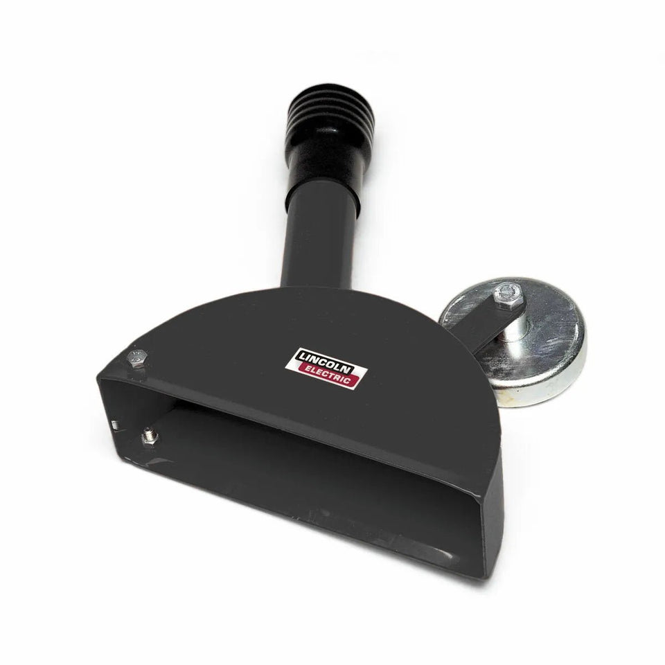 The Lincoln UNM Suction Nozzle for Heavy Smoke - K639-6 features a 200 mm (8 in.) opening and a magnetic stand for secure mounting. Designed for heavy smoke environments, it includes an adapter for 1-3/4 in. hoses and offers a best capture distance of less than 4 in. (100 mm).