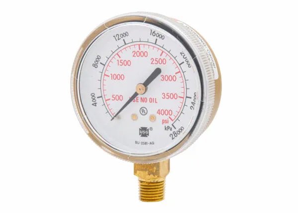 63mm steel regulator pressure gauge with 1/4" NPT bottom stem, 4,000 PSI / 28,000 kPA