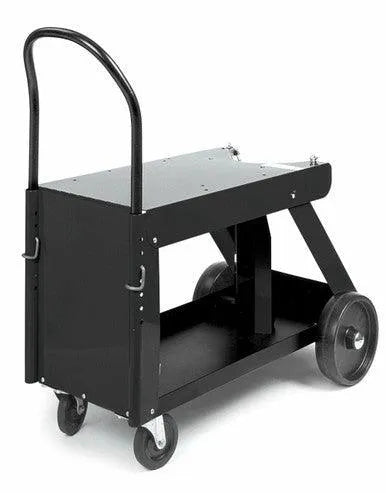 Accommodates power source, gas cylinder, tools and welding accessories. Includes adjustable handle, front casters, and rear wheels.