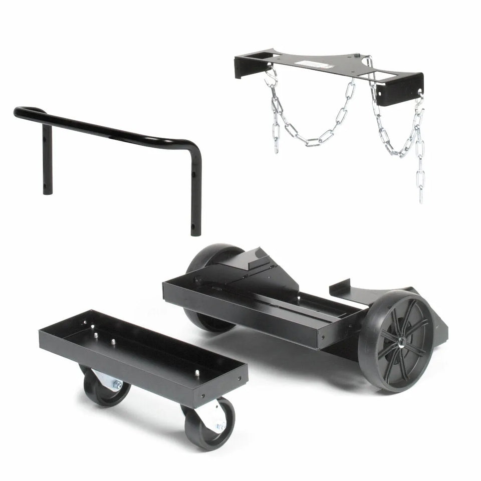 - Handle, front casters and rear wheels for maneuverability and easy transportation