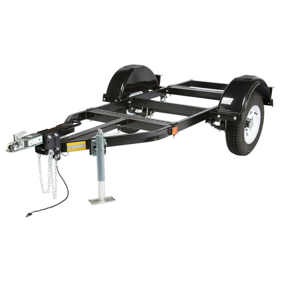 Two-wheeled trailer with a standard Duo-Hitch™ (2” Ball and Lunette Eye combination hitch) for heavy-duty road, off-road, plant, and yard use. For highway use, consult applicable federal, state, and local laws regarding possible additional requirements. Optional fender and light package available.