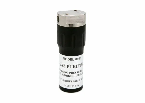 Model 8010 gas purifier protects the gas system from contamination of oil and water found in some industrial gases and occasionally in specialty carrier gases. The small daily operating costs more than justify the prevention of a system shut-down and the subsequent cleaning and/or repair costs. The Model 8010 purifier shell must be used with a specially designed replaceable cartridge.