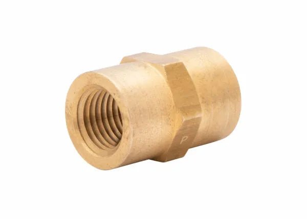 Brass pipe thread adaptor for Models 2290-H and 2290-HPM heating tip assemblies. It has 1/4" NPT (F) x 1/4" NPT (F) connections with a maximum working pressure of 3000 psig. Multiple arrangements of 2290-H and 2290-HPM tips can be assembled using this pipe thread adaptor along with Model 2327 coupler and Model 2357 nipple when wider bands of heat are necessary.