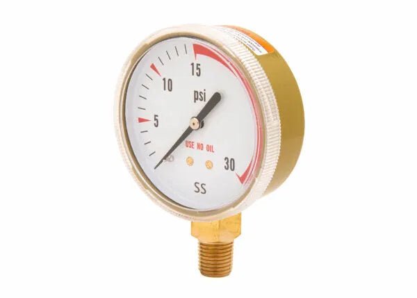 2.5 in. steel regulator replacement gauge with 1/4 in. NPT bottom stem, 30RZ PSI / 200 kPa for use with acetylene