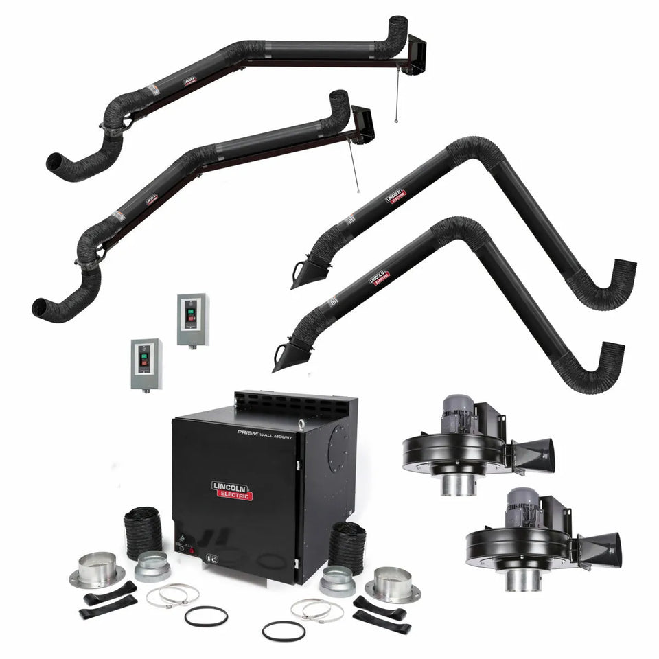 FUMES DON’T STAND A CHANCE The Prism Wall Mount units are stationary, wall-mounted low vacuum systems intended for light to medium duty extraction and filtration of welding fume. Ideal for job shops, welding schools and maintenance departments, the Prism Wall Mount unit is designed for facilities with fixed work stations and limited floor space. The One-Pak packages help simplify the selection process.