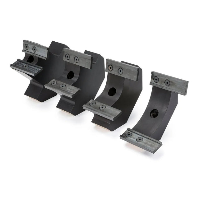 - Extended shoe plates square the joint to the torch motion