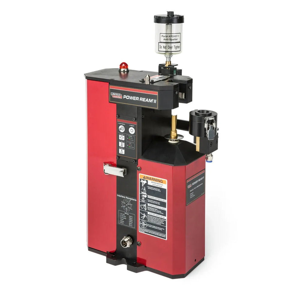 Standard Wire Cutter provides consistent wire stickout and removes the ball at the end of the welding wire for superior arc starting performance. Error Signal Feedback POWER REAM II returns to the home position signaling the robot to end weld cycle Spatter Guard mounted to the gripper housing keeping debris from entering Spray Containment Unit catch basin collects over-spray to reduce slag and spatter residue left on the reamer & jigs. Quick fitting can connect to the drain-line collecting unused anti-spatter fluid for disposal.